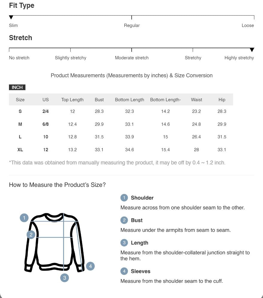 | Size | US | Top Length | Bust | Bottom Length | Bottom Length- | Waist | Hip |